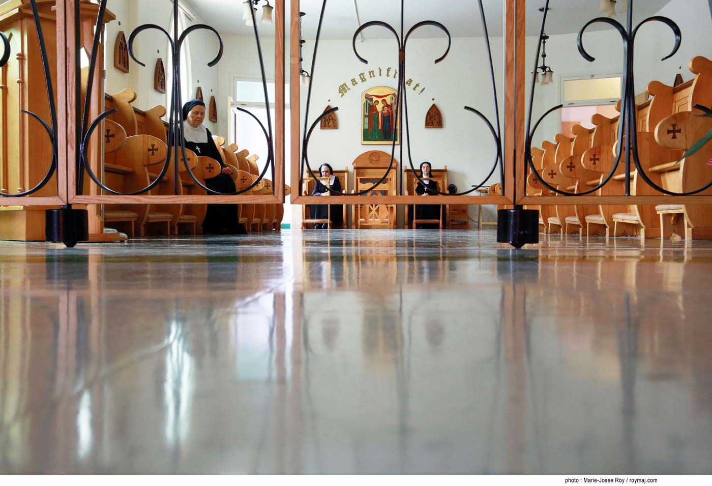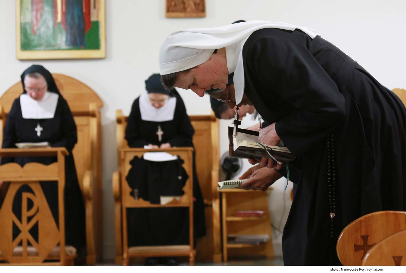 La petite communauté des sœurs de La Visitation de Sainte-Marie de La Pocatière compte 15 sœurs, dont 13 professes solennelles et deux professes temporaires qui portent le voile blanc.