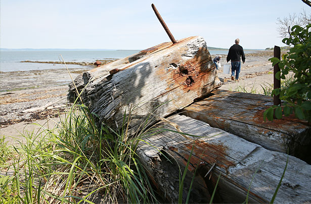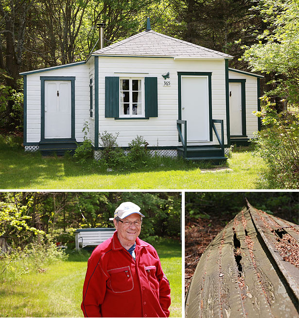 Sur le chemin du retour, je fais la rencontre de M. Benoît Gagné qui en 2009, a acheté une de ces cabines de plage. Sur son terrain, on y voit les restes d’une chaloupe nommée «Seagull», identique à celle sur la photo d’archive qui orne le mur de sa cabine.