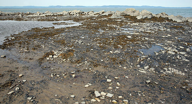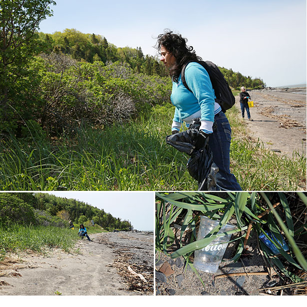 Après une brève présentation sur les écosystèmes côtiers donnée par Élise Marquis de l’organisme OBAKIR (Organisme de bassins versants de Kamouraska, L’Islet et Rivière-du-Loup), les équipes se forment. Il y a quatre zones à couvrir. Je choisis de suivre le groupe qui se dirige vers le secteur situé derrière le Cénacle, à l’extrémité ouest du village.