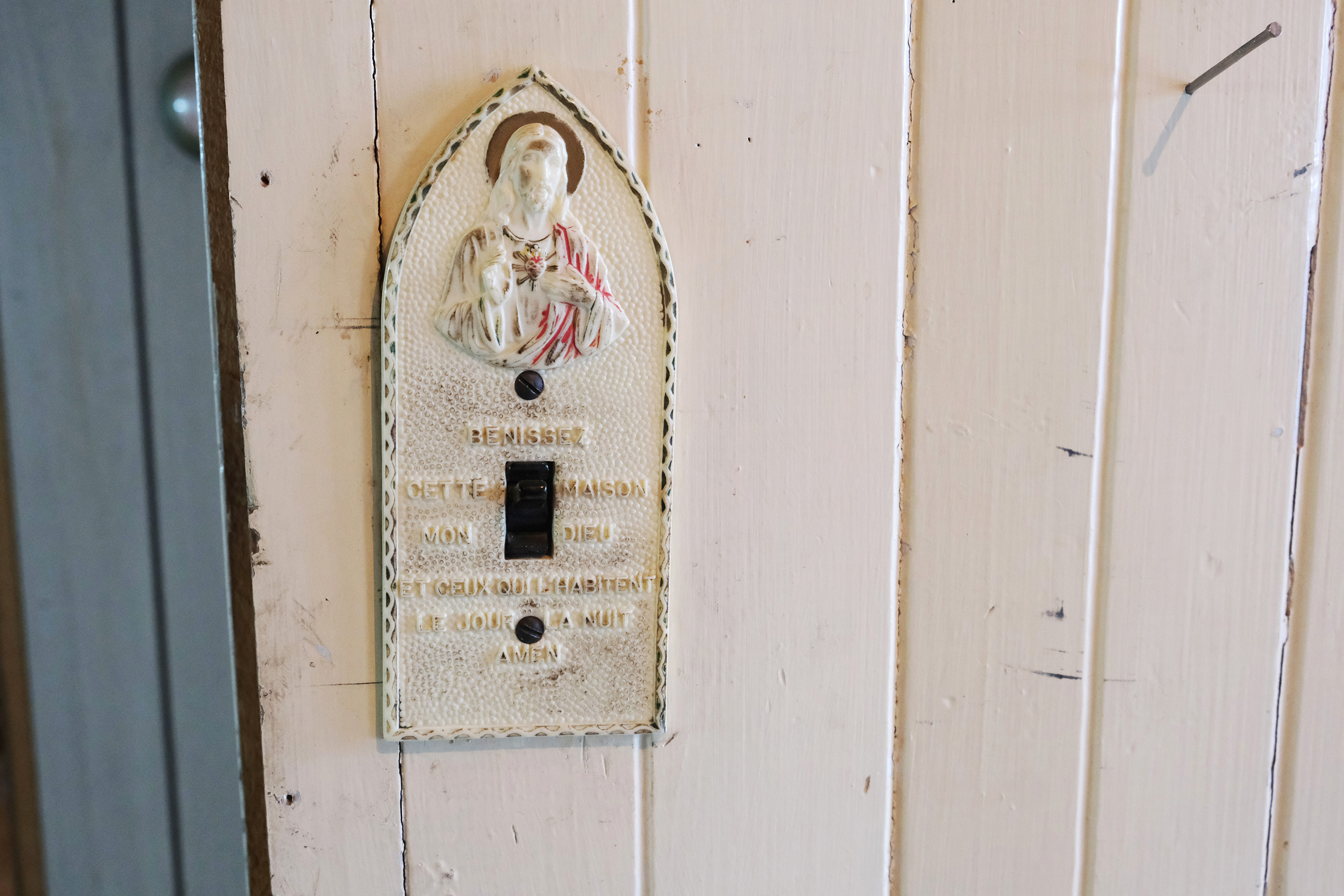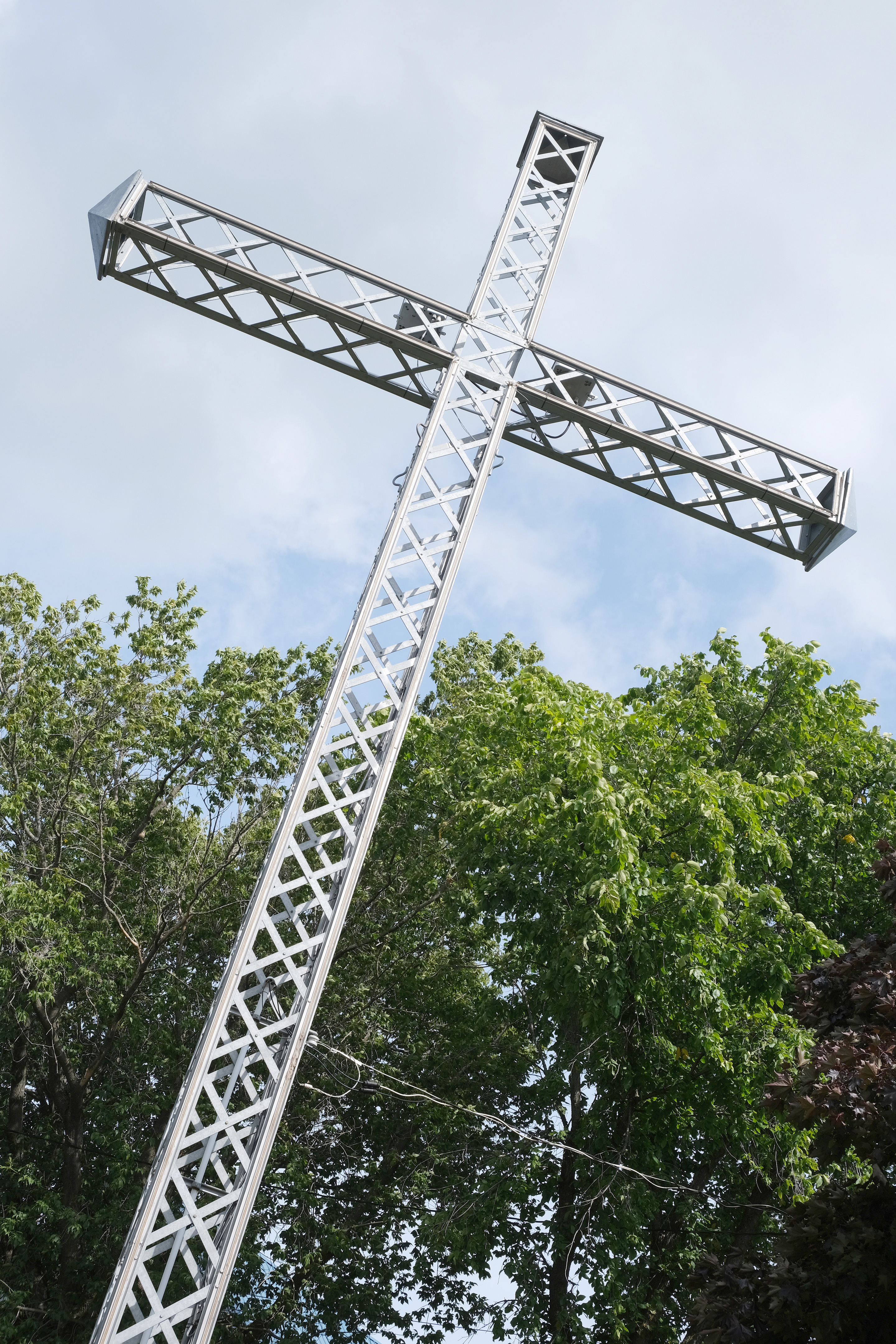 > À droite, la croix de chemin que le père de M. Ouellet avait fabriquée il y a plusieurs années se dresse encore fièrement au centre du village de St-Alexandre