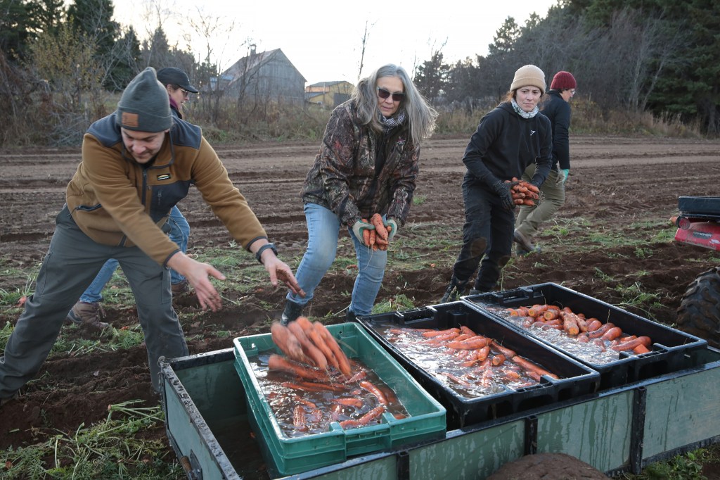 Le maraîcher avoue candidement qu’il sème toujours un peu plus. Ne sachant jamais d’avance la quantité qu’il pourra écouler dans les différents marchés locaux, il aime l’idée que les gens puissent profiter de ses surplus, plutôt que de les perdre. «Tant qu’à stocker les carottes dans ma chambre froide et la remplir pour les jeter au printemps, je vais garder les petites qui sont plus faciles à vendre, puis je vais donner au Carrefour les plus grosses qui sont aussi bonnes», explique-t-il.