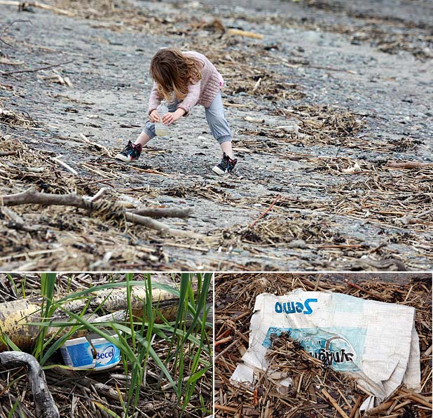 L’œil aux aguets, chacun se mets à la recherche des éléments non désirés. À peine quelques secondes plus tard, bouteilles de plastique, emballages alimentaires, matériels de pêche et résidus de toutes sortes sont découverts. Une vraie chasse au trésor!