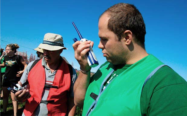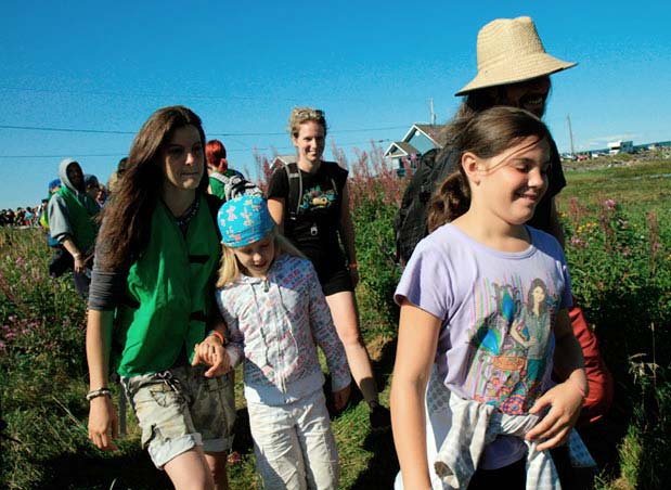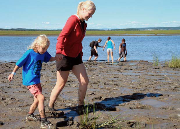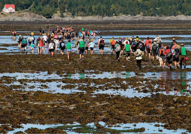 9h45, la marée est maintenant suffisamment basse pour se rendre à l’île Ronde, située à 2,5 km, soit la moitié du trajet. Alex Fraser, le guide de tête, donne le départ. Résident de l’île, Alex a foulé le sol boueux du fleuve mainte et mainte fois. La joyeuse équipée est donc entre bonnes mains!
