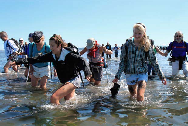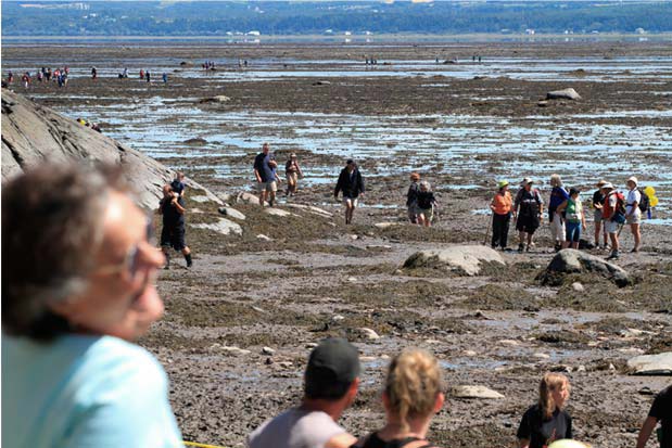 À environ 1 km de l’île Ronde, Alex Fraser arrête le groupe. «Nous devrons attendre quelques minutes que la marée soit totalement basse.»