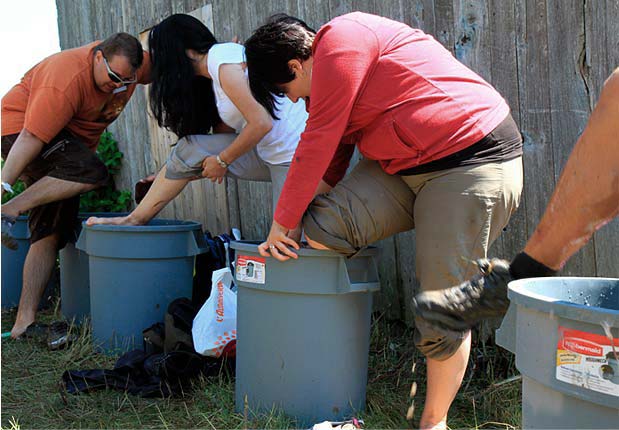 Il ne reste plus qu’à se «débouetter». Un petit saut dans un baril remplit d’eau et hop, l’équipée bien méritante emprunte la route du Quai-d’en-bas pour se diriger vers le lunch.
