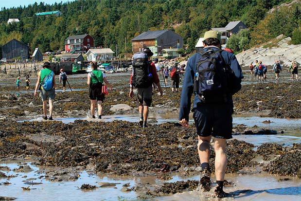 C’est à maigre d’eau, deux jours après la nouvelle ou la pleine lune, lorsque la marée est à son plus bas, que le passage est amplement dégagé pour permettre la traversée à gué entre le village et l’île. Autrefois, les insulaires profitaient de cette période pour passer des marchandises d’une rive à l’autre sur des chalands, sorte de radeaux spécifique à la région. «Si on voulait, on pourrait traverser à pied chaque deux semaines» dit Gérald. L’événement se tient toutefois qu’une fois par année, par souci de préservation de l’environnement.
