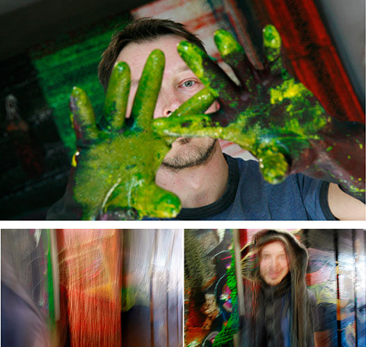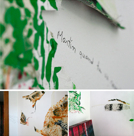 Martin se relève satisfait. «Habituellement, je laisse sécher quelques heures avant de retirer les caches», mais sentant mon impatience, le peintre retire les papiers pour me laisser découvrir les œuvres enfin terminées.
