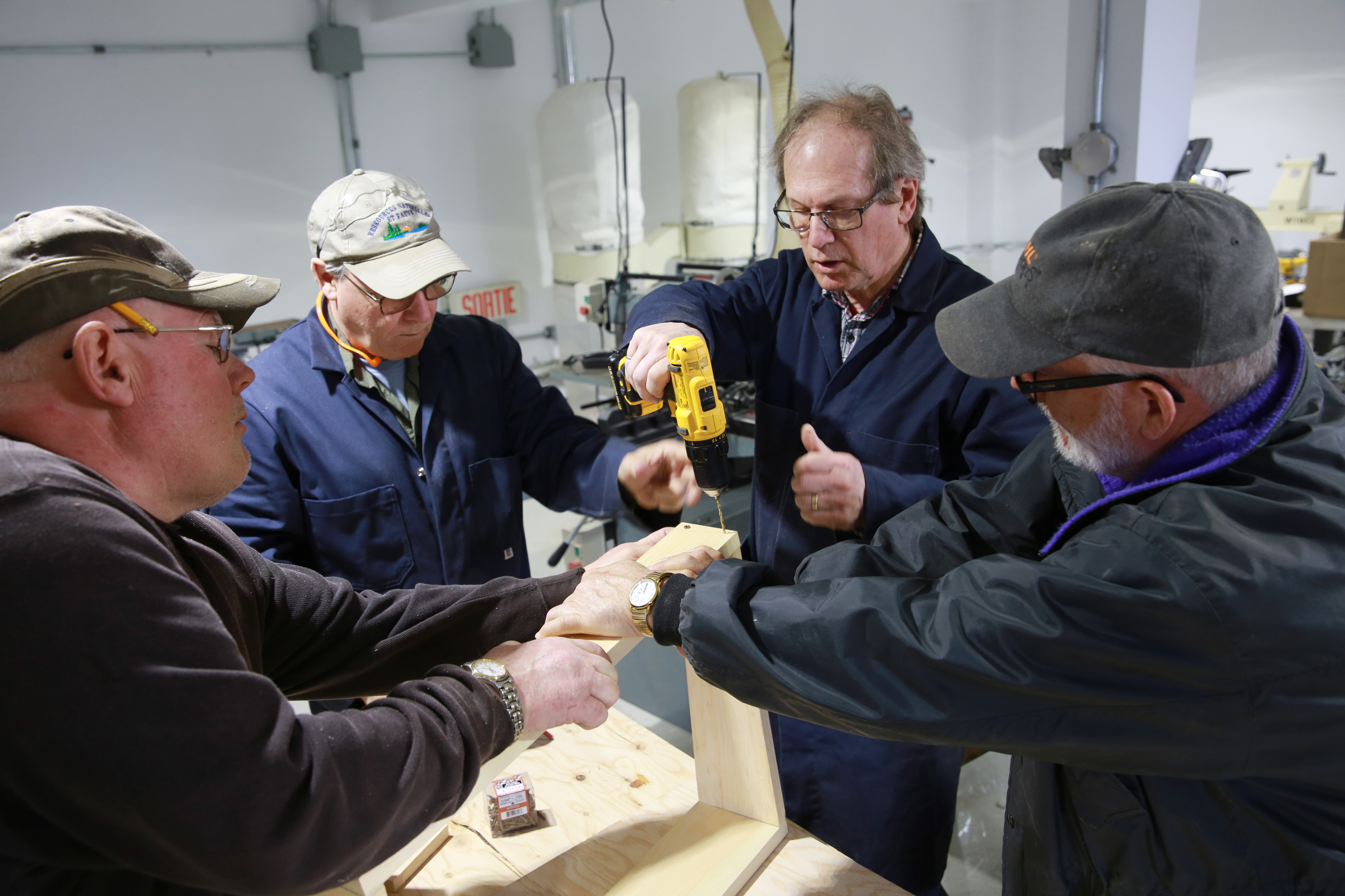 À peu près au même moment, Marie-Noëlle Richard, agente de développement communautaire, assiste à une conférence où elle entend parler du mouvement australien Men’s Sheds. Dirigés principalement par des hommes et pour les hommes âgés, les « hangars » sont des lieux accueillants qui proposent à leur clientèle une occasion de socialiser et de s’occuper, tout en s’impliquant dans leur communauté.