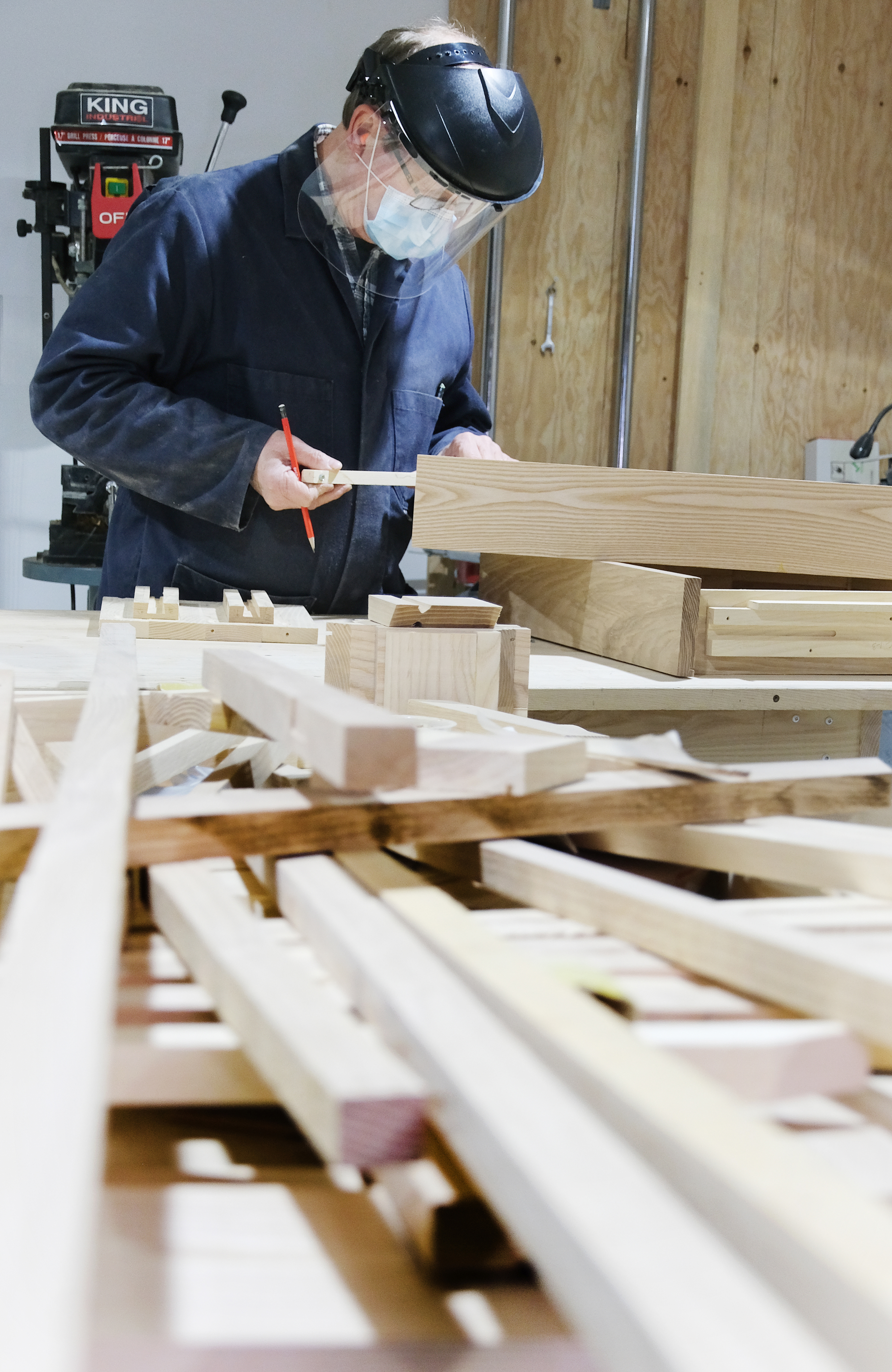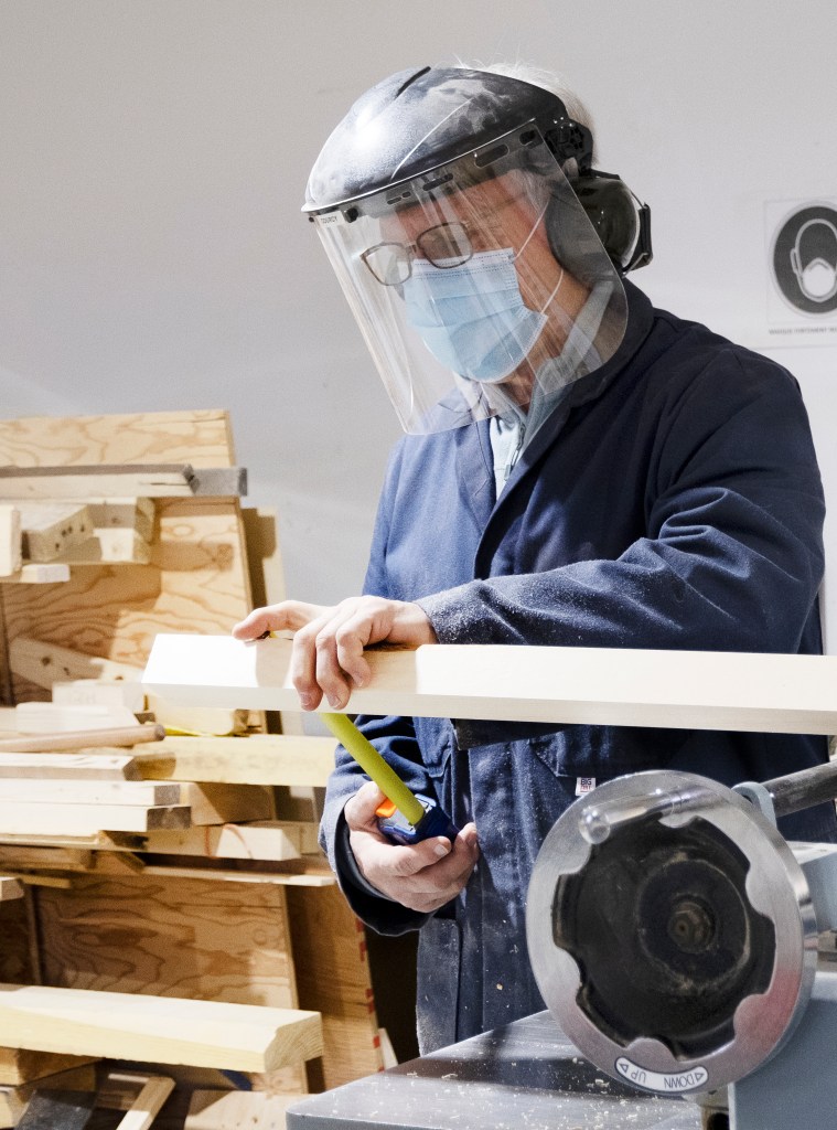 Cependant, comme ce fut le cas pour plusieurs organismes, la COVID-19 freine durement les activités de l’Atelier, qui a dû fermer ses portes pendant presque trois mois consécutifs. Le retour se fait en douceur. Seulement six menuisiers à la fois peuvent être présents. Masques et visières obligatoires en tout temps rendent la manipulation des outils plus laborieuse. L’ambiance n’est plus la même, car les règles sanitaires imposées par le gouvernement sont très contraignantes. Plusieurs membres plus âgés préfèrent rester chez eux à s’ennuyer. D’abord un lieu de rencontre où la menuiserie sert de prétexte à la socialisation, l’Atelier, ces jours-ci, se sent un peu triste à cause de toutes ces exigences.
